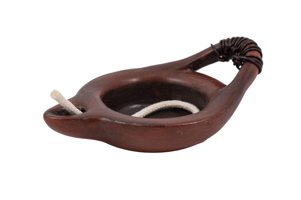 Ερυθρό πήλινο λυχνάρι εμπνευσμένο από μονόμυξο λυχνάρι που βρέθηκε στην ανασκαφή του οικοπέδου Μακρυγιάννη. Το πρωτότυπο (ΝΜΑ 5198) βρίσκεται στο μουσείο της Ανασκαφής, στο επίπεδο -1, προθ.5 αρ.1. Τιμή: μικρό μέγεθος 20,00 € | μεγάλο μέγεθος 30,00 € - Σχεδιασμός: Αττικό Φως