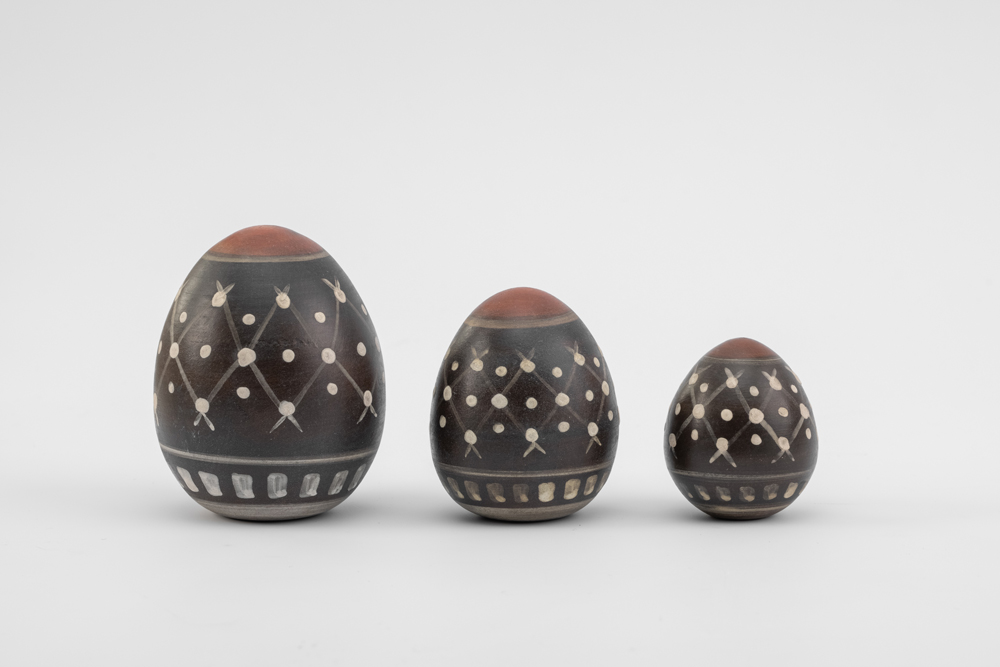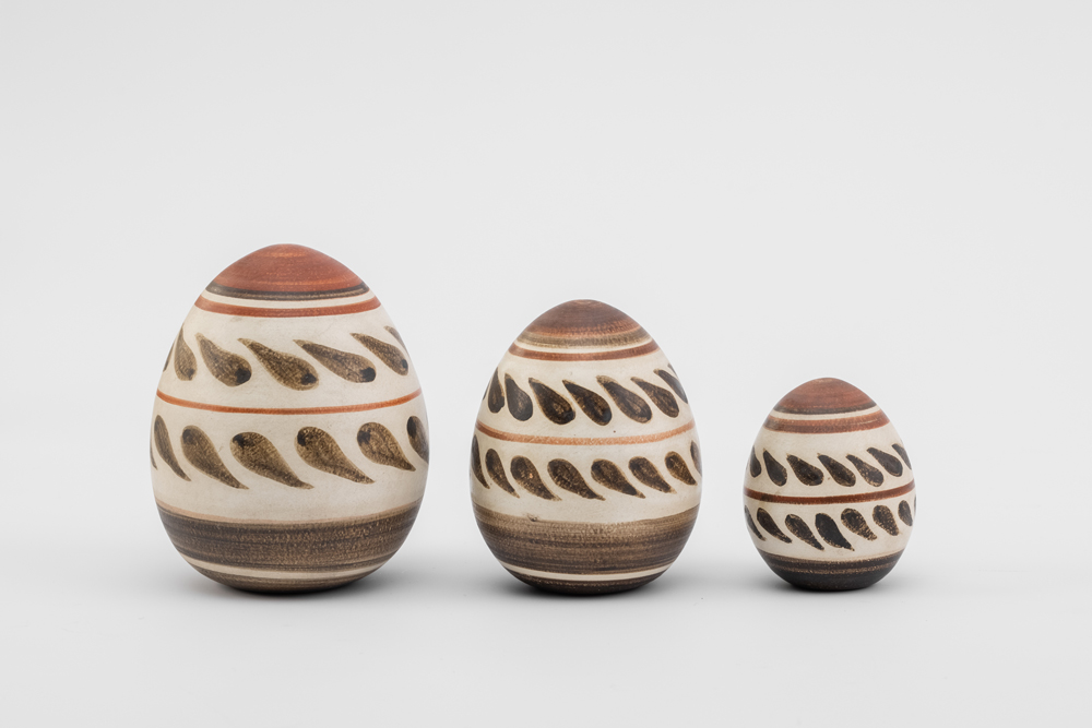 Our ceramic eggs have bright abstract designs inspired directly by the ancient decoration on clay spindle whorls (weaving weights), which brides-to-be dedicated to the Sanctuary of Nymphe in the 6th century BC. The spindle whorls can be seen at the Acropolis Museum when visiting the Gallery of the Acropolis Slopes on the ground floor of the Museum (Showcase 6, no. 128). Price: small size 24.00 € | medium size 28.00 € | large size 33.00€ - Design: Attikon Fos