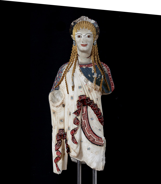 Πρόκειται για ένα διεπιστημονικό πρόγραμμα τεκμηρίωσης της χρωματικής διακόσμησης των μαρμάρινων γλυπτών της αρχαϊκής συλλογής του Μουσείου. Σκοπός του προγράμματος, που ξεκίνησε το 2012 και συνεχίζεται μέχρι σήμερα, είναι η καταγραφή και ταυτοποίηση των χρωματικών υπολειμμάτων που σώζονται πάνω στα γλυπτά, η μελέτη της σύστασης των χρωστικών και συνδετικών υλικών, η τεχνική εφαρμογής τους και η προέλευση των πρώτων υλών. Από τη μέχρι τώρα έρευνα ταυτίστηκαν χρωστικές όπως μαλαχίτης, κονιχαλκίτης, αζουρίτης, αιματίτης, κιννάβαρη και κύανος ο αιγύπτιος. Οι αναλύσεις, η βιβλιογραφική έρευνα και η πειραματική εφαρμογή χρωστικών πάνω σε πιστά αντίγραφα επιλεγμένων τμημάτων των γλυπτών, οδήγησαν στη διαπίστωση ότι στην αρχαιότητα, η εφαρμογή του χρώματος σε ορισμένες περιοχές των γλυπτών γινόταν με την τεχνική του λιωμένου κεριού με έγκαυση, μια διαδικασία που μοιάζει περισσότερο με μικρογλυπτική σε στρώμα έγχρωμου κεριού, παρά με ζωγραφική.