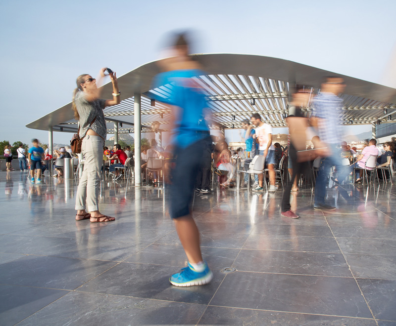Located on the Museum’s second floor, the restaurant features a 700 square meter dining area with panoramic views of the Acropolis and other historic hills of Athens. Here you will find a selection of hot dishes, based on traditional recipes, which are updated seasonally. The hot-food kitchen is open starting at 12 noon.