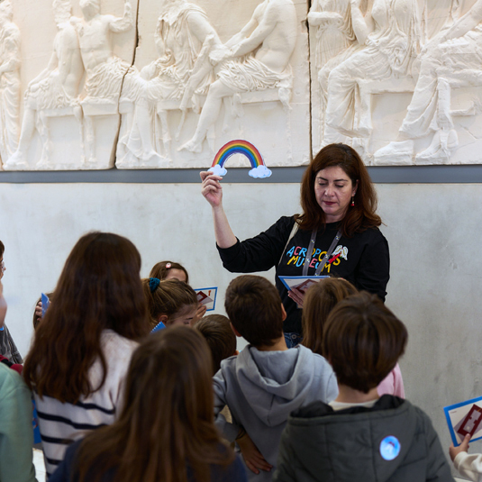 Το Μουσείο Ακρόπολης υποδέχεται τις οικογένειες με μικρά ή μεγαλύτερα παιδιά με μια σειρά ευφάνταστων προγραμμάτων και δράσεων. Παρουσιάσεις εκθεμάτων, βιωματικά εργαστήρια, δημιουργικές δραστηριότητες, δανειστικά σακίδια, φυλλάδια εξερεύνησης, ακουστική ξενάγηση για παιδιά, καθώς και ένας ειδικά διαμορφωμένος χώρος με διαδραστικά παιχνίδια και βίντεο μετατρέπουν την επίσκεψη στο Μουσείο σε αξέχαστη εμπειρία.